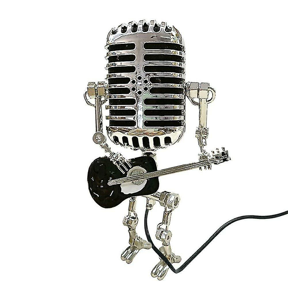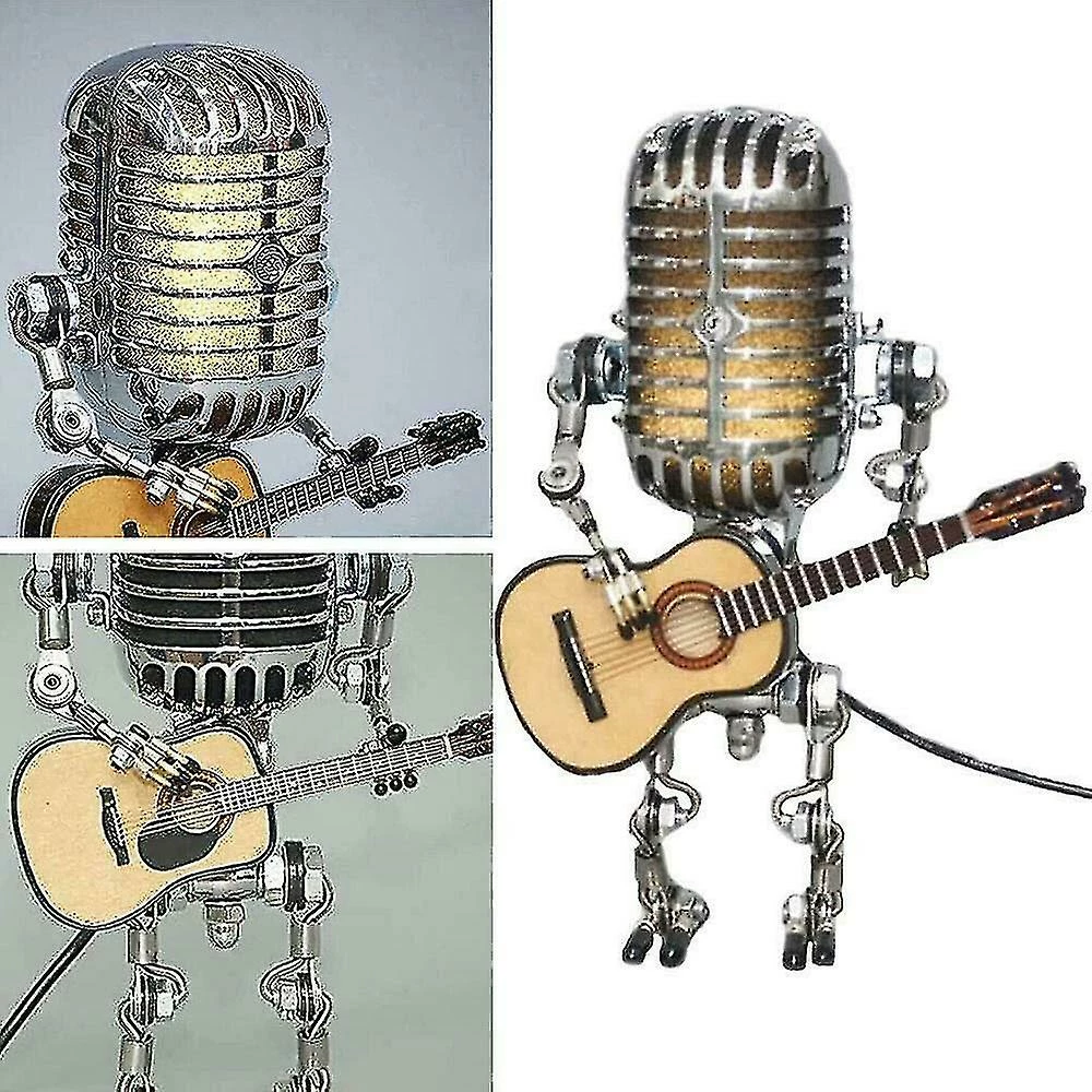 Unbranded Usb Retro Style Microphone Robot Lampe Holding Guitare Avec Lumière Vintage Décoration De La Maison