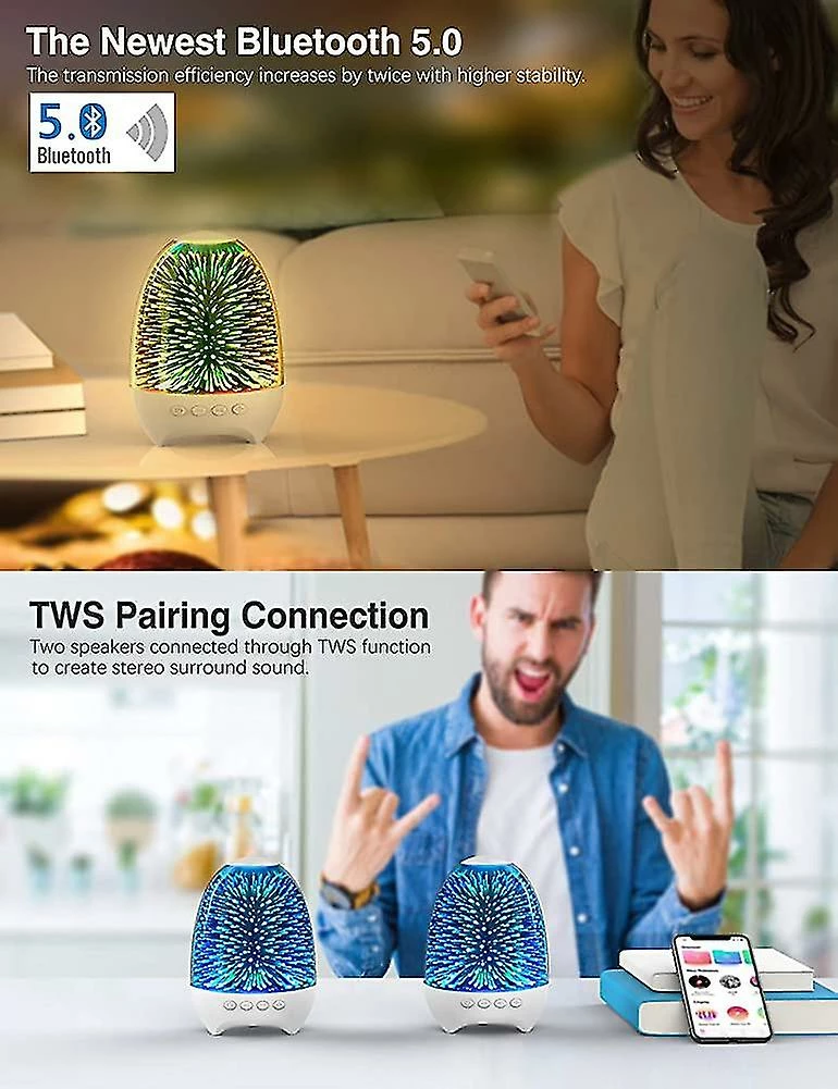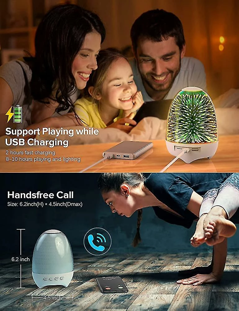 Multi-function speaker lamp: 6 in 1 3D glass speaker night light with multiple lighting effects and music play mode brings much joy to home. Suitable for use as wireless Bluetooth speaker, touch control night light, color changing mood light, USB/TF card speakerphone, hands-free call, FM radio, etc.