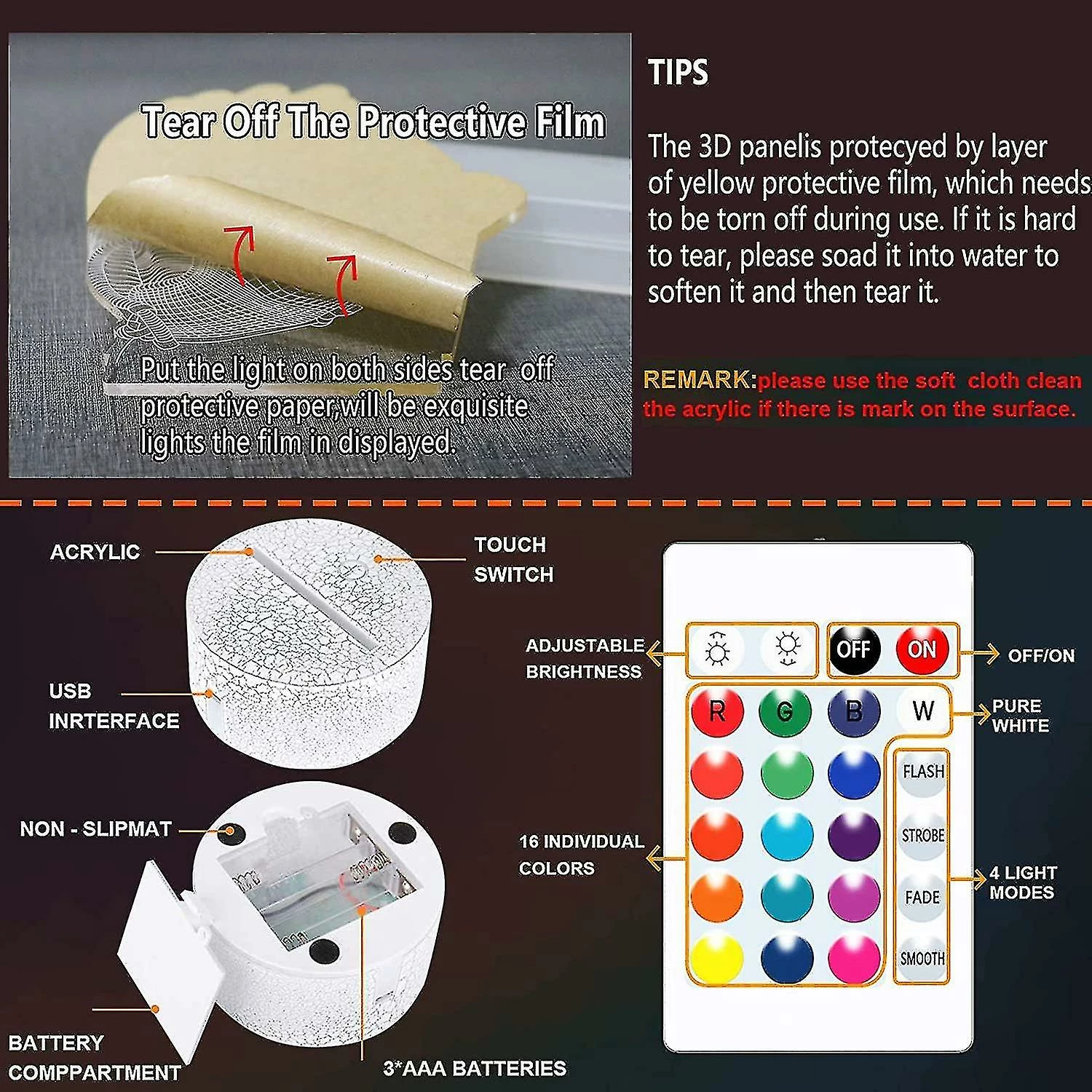1x 3D illusion lamp (1 x Acrylic panel + ABS Base)