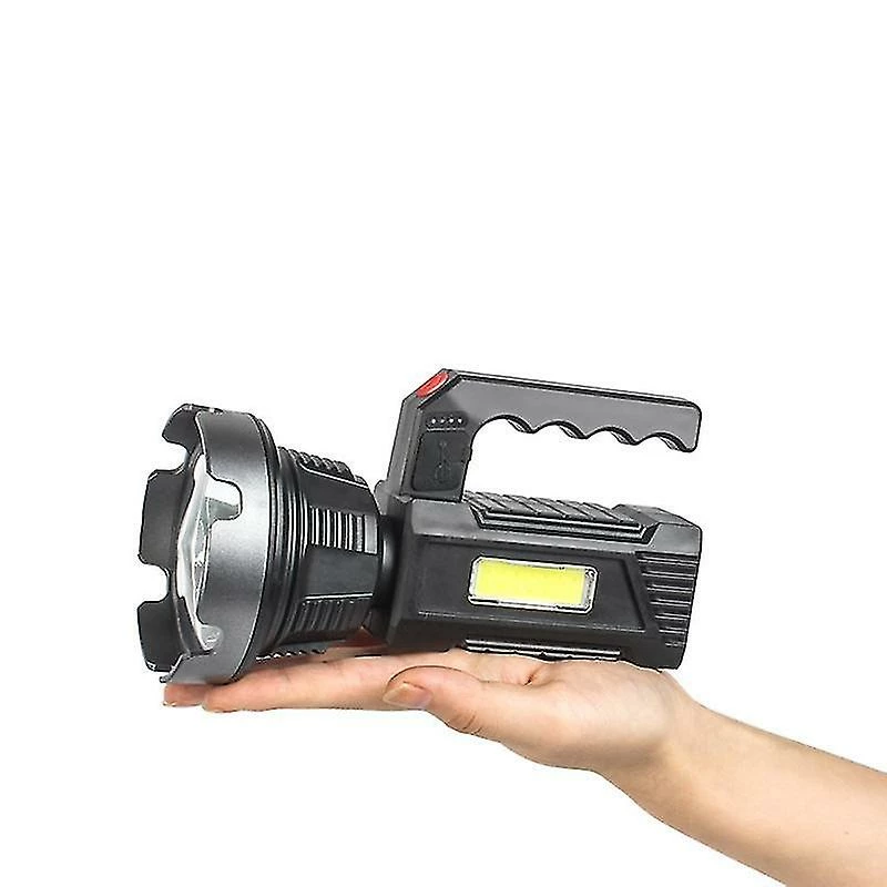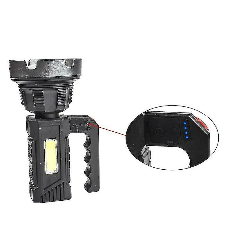 Specifications: Brand:XANES Product Name:Flashlight Material:ABS Waterproof:IPX6 Lamp core type:50W LED+COB Light source:White light Endurance:5-10 hours Four gears:Main light high light – Main light medium light – Main light low light – Side light Battery type:Built-in lithium battery Charging method:USB charging Weight:176G Features: -Four-position switch, power display. -USB rechargeable, convenient and fast. -50W LED light beads, high brightness, long range. -ABS material, portable grip. Package Included: 1 x Flashlight 1 x USB data cable 1 x Color Box