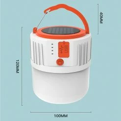 Camping Lamp With remote control Size: 11 * 9cm, Elongated size: 11X15cm, Material: Waterproof New ABS material, Power supply: 18650 rechargeable lithium battery, Lamp beads: LED, 280W Solar.Function: camping light, emergency light, emergency power.