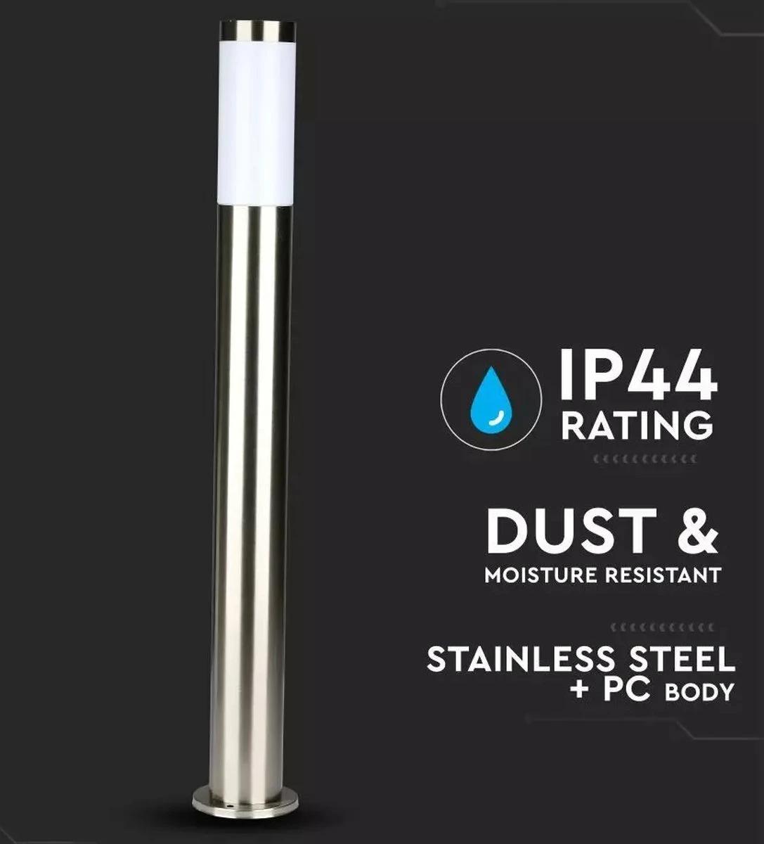 Vous n’avez pas à vous soucier de l’humidité, de la chaleur ou du froid avec cette lampe d’extérieur. L’acier inoxydable Dally L est équipé d’une résistance à l’eau IP44 professionnelle. Cela garantit que le fonctionnement de la lampe ne peut pas être affecté par les intempéries. L’extérieur de la lampe reste également magnifique. La lampe d’extérieur sur pied est fabriquée en aluminium très robuste et finie avec un revêtement en acier inoxydable résistant aux intempéries. Cela garantit que la lampe ne rouille pas et conserve sa couleur d’origine pendant longtemps.