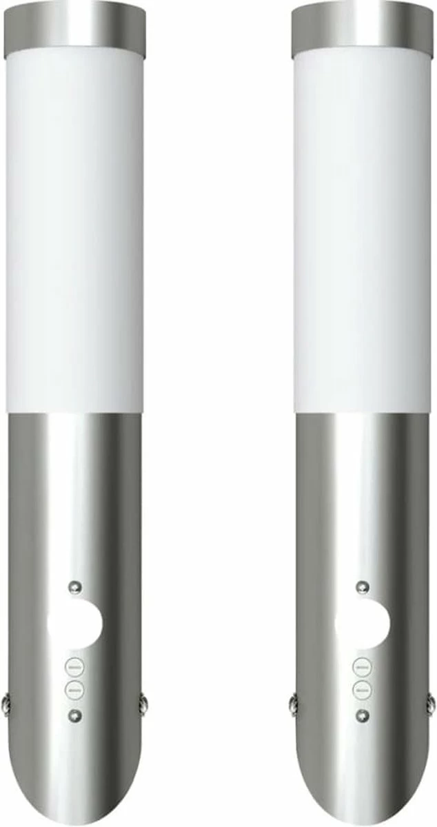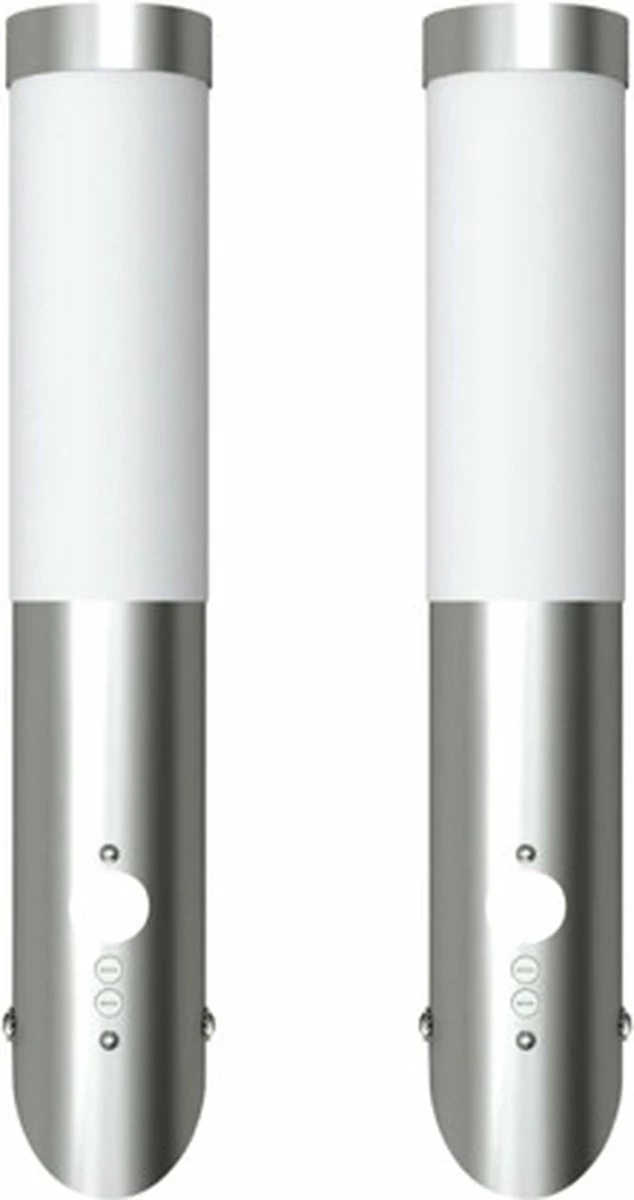 Cet ensemble de deux lampes d’extérieur modernes avec détecteur de mouvement ont un boîtier étanche en acier inoxydable et une fenêtre en plastique opale pour une belle lumière atmosphérique qui n’éblouit pas. le lampes extérieures peut être facilement fixé au mur au moyen des deux vis fournies. le lumière d’extérieure convient également aux lampes LED .