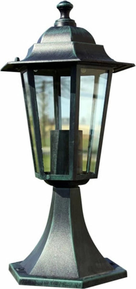 Cette lanterne de jardin simple mesure 41 centimètres de haut et a un aspect classique. Le lampadaire de jardin convient aux ampoules d’une puissance maximale de 60 Watt et est donc idéal pour éclairer votre jardin, votre terrasse ou votre allée. Les abat-jour de la lampe de jardin sont en verre et le cadre et le support vert foncé sont tous deux en aluminium solide.