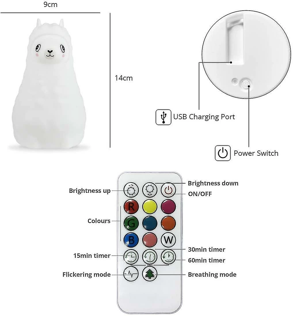 WOSAWE Lampe De Nuit En Silicone Pour Enfants Avec 9 Modes De Changement De Couleur Soft Glow, Portable, Rechargeable Et Télécommandé, Hibou (alpaga)