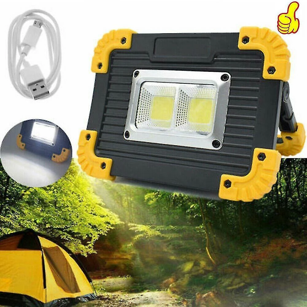 USB Rechargeable LED Work Light COB Camping Floodlight Portable Emergency LampFeatures:-High Brightness —bright enough for Camping, Hiking, Fishing, Barbecue, Party, Car fixing, Exploration and more Outdoor Activities.-Handle is Stand — Unique 180 rotating two in one design of the stand, portable and lightweight work light, easy to carry or put onto the ground with the stand or hanging, easy use in Basement ,Garage or Home Garden at night.-Long Working Time — Waterproof and durable shell spotlights meet more outdoor requirements with discharging time more than 5 Hours.Product DescriptionPower: 20WRange: within 100 metersPackage included:1x Portable COB Floodlight( Battery is not included )1x USB CableNote:1. Due to the different monitor and light effect, the actual color of the item might be slightly different from the color showed on the pictures.2. Please allow 1-3cm measuring deviation due to manual measurement.( 1 inch = 2.54 cm )