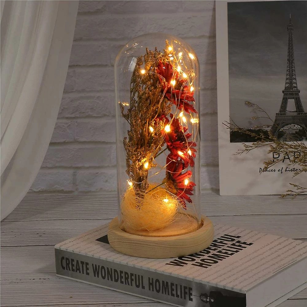 Yskaze Lampe De Fleur Enchantée, Tournesol Artificiel Dans Un Dôme En Verre, Lampe à Fleurs à Led Pour La Saint-Valentin Fête Des Mères